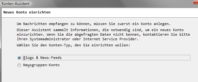 Soll heißen, die Auswahlmöglichkeit "Blogs & News-Feeds" im Konten-Assi ist bei dir nicht vorhanden?