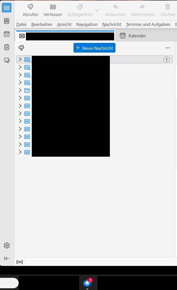 Was ich sonst normal so nicht mache, ich bin nach Erscheinen der Anzahl in der Taskleiste zu Thunderbird gewechselt, um zu schauen, ob die Anzahl in der Taskleiste verschwindet, sobald ich Thunderbird in den Vordergrund hole. (Tat es nicht.) Wieder zu einem anderen Programm gewechselt und "schwupp" stand dann bald die 2 in der Taskleiste, obwohl nur eine Mail eingegangen war...