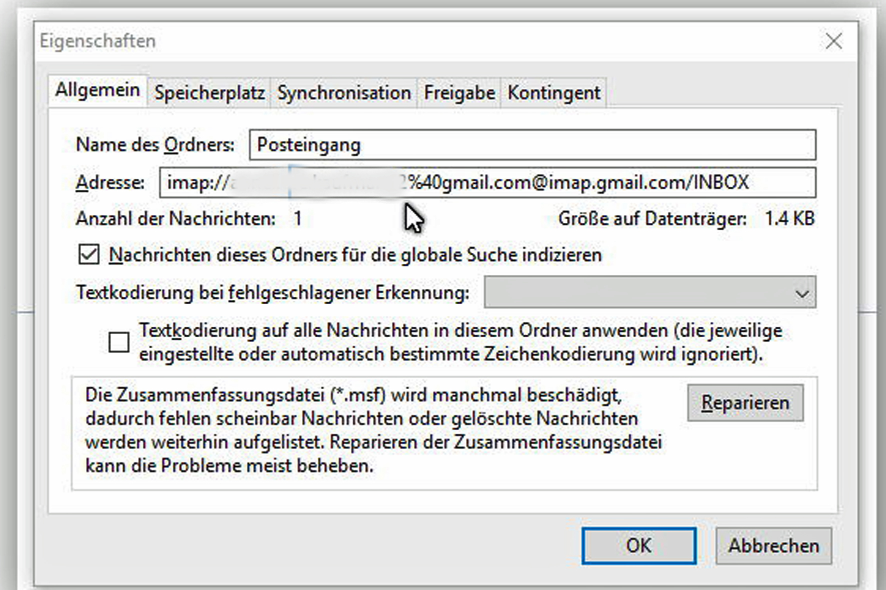 Thunderbird = 45.5 / IMAP / Win 10/64 Bit / Kaspersky-Internet-Security