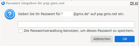 Vor ein paar Stunden klappte der Abruf noch problemlos. Auch auf meinem Tablett mit der GMX App kann ich noch meine E-Mails abrufen, ohne ein Passwort eingeben zu müssen.