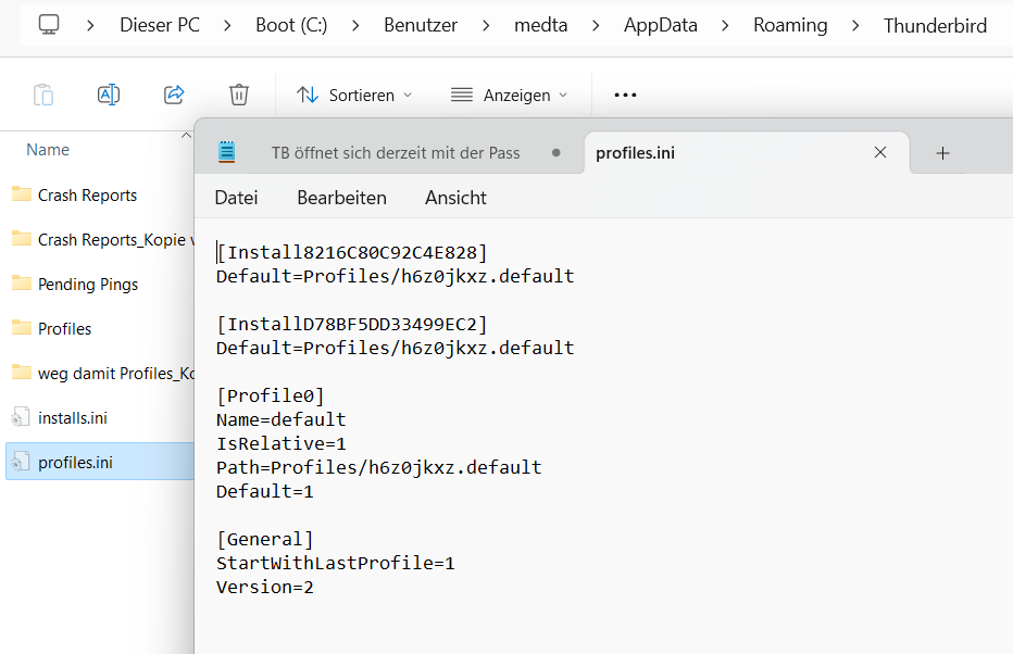 • zeige den Profilordner an und beende TB