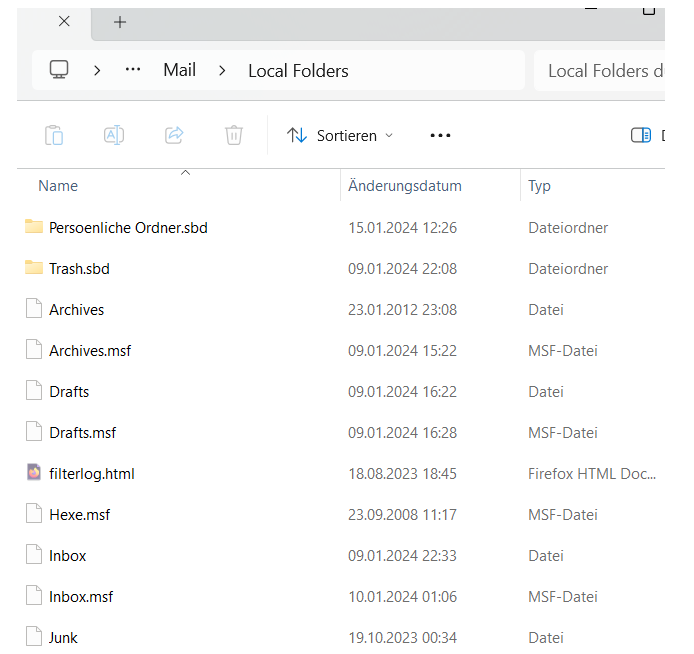 • im Original von Local Folders lösche die Datei "Persönliche Ordner.msf