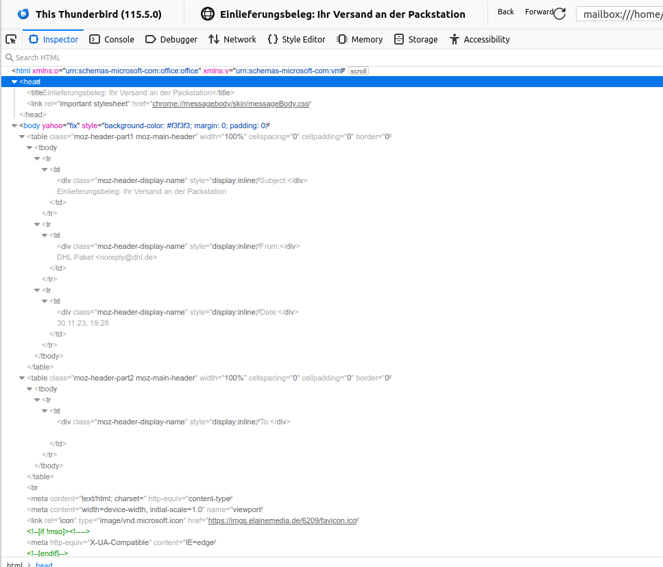 In der Emaillistenspalte "Von" steht zu untenstehender Mail nur "DHL Paket" - Spam/Phishing lässt grüßen.