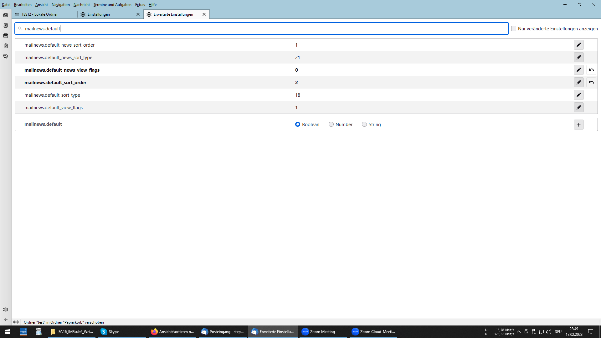 Ich habe jetzt die Einstellungen, gemäß der Vorgabe, übernommen.