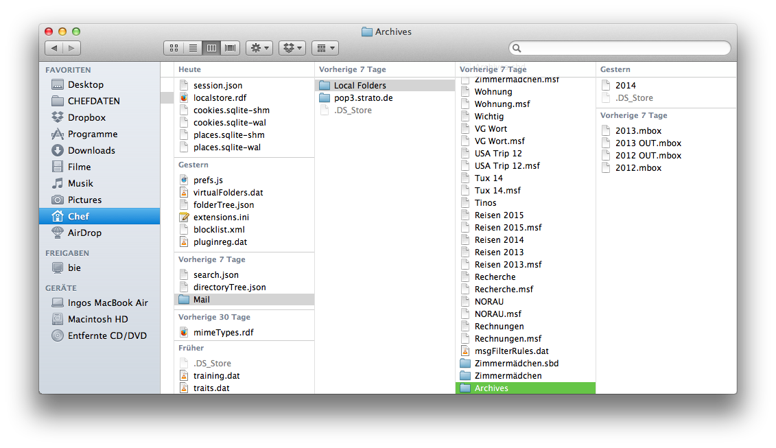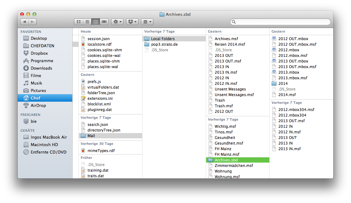 Einzige Auffälligkeit: mit Start TB wurde in "Local Folders" sofort zu jeder Ordnerbezeichnung (Archivordner und Lokale Ordner) wieder eine zusätzliche, gleichnamige Datei plus ".msf" erzeugt. Schlimm?