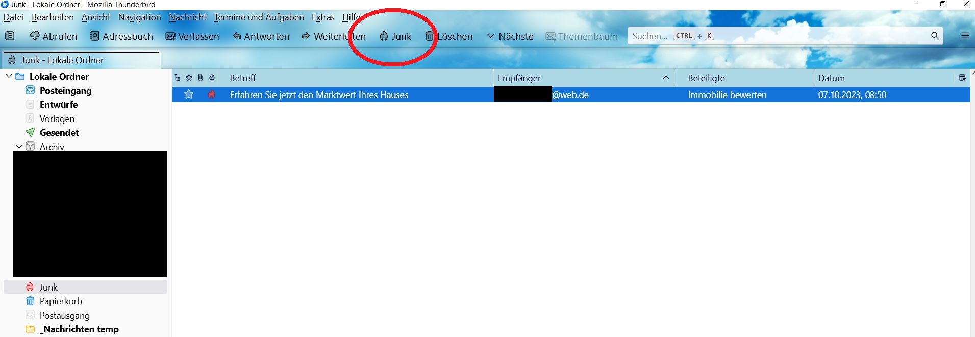 nein, die Header-Pane meinte ich nicht, die habe ich auch so, wie bei Dir abgebildet. Ich meine schon die Munue-Bar des Ordners "Junk", wie in meinem Bild gezeigt und rot eingekreist.