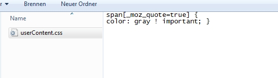 Ich lege im TB Benutzerverzeichnis den Ordner chrome und darin die Datei userContent.css an.