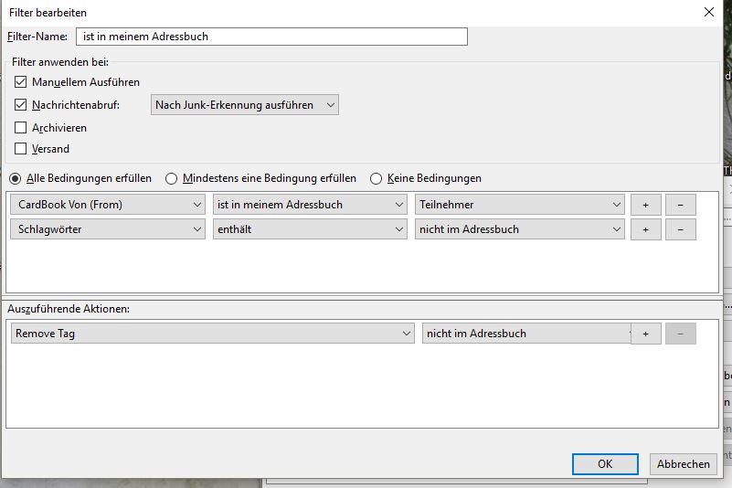 Cardbook Von, ist NICHT in meinem Adressbuch, Testadressbuch dann füge Schlagwort hinzu.