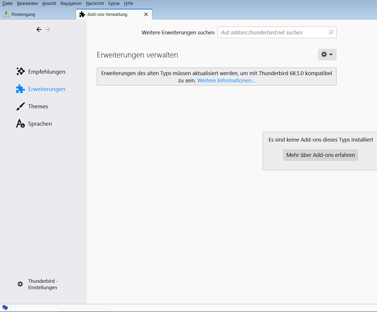 - Thunderbird-Version: 68.5.0