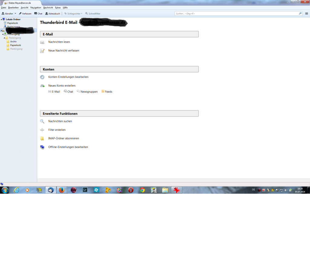 2) Lokale Ordner: ich habe unter Extras > Konteneinstellungen > Servereinstellungen ganz unten den Button: lokaler Ordner gefunden. Ich bin diesem Pfad gefolgt und habe mir alle Ordnereinträge angesehen, Ergebnis: die sind alle leer!?? Ist das normal, kann ich mir nicht vorstellen.