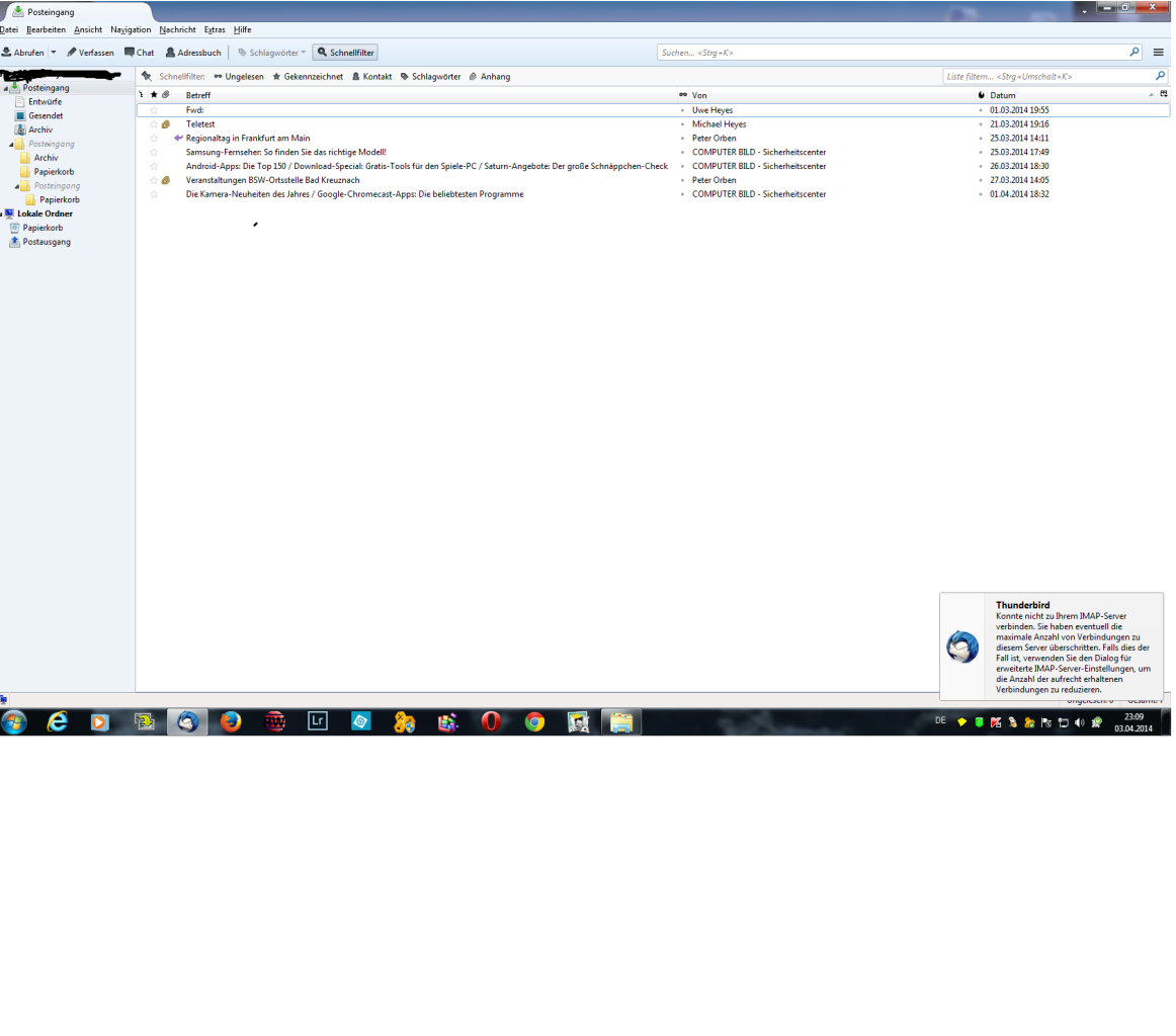 Aber ich habe gerade aktuell ein anderes Problem: Ich kann keine mails mehr abrufen!! Und zwar erscheint bei dem Versuch dieser Hinweis, den ich auf den screenshot kopiert habe.