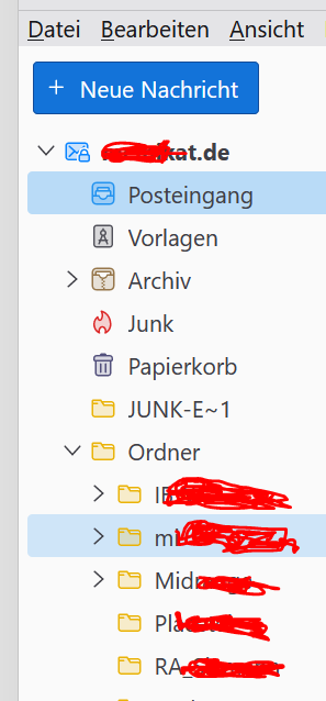 Ordner in 2 von 4 (3*POP 1*IMap,) Konten!