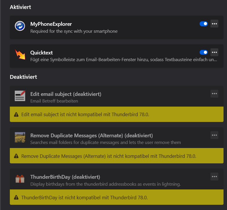 • die Liste der von mir in der Version 60.9.1installierten AddOns sieht jetzt so aus (siehe Dateianhänge)
