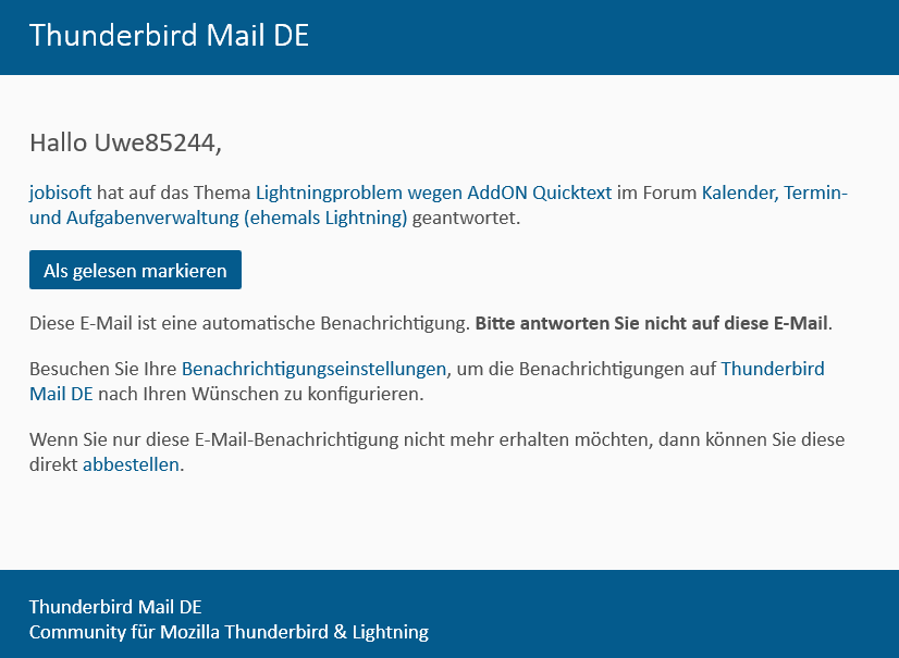 Und lustigerweise sind die Mails vom Forum, in der eine neue Antwort angekündigt wird, wunderbar lesbar - siehe Anhang![]()