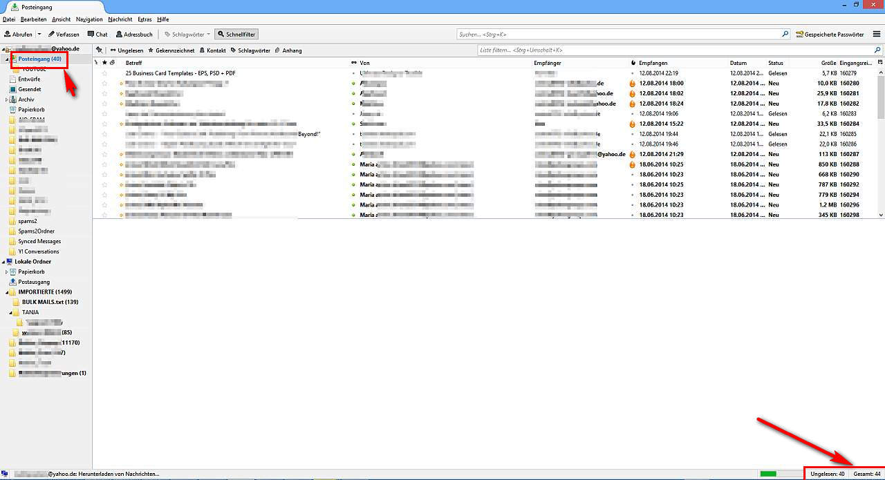 Und zwar verbleiben immer Reste von Mails in meinem Inbox-Ordner, die ich nicht vom Server laden kann.