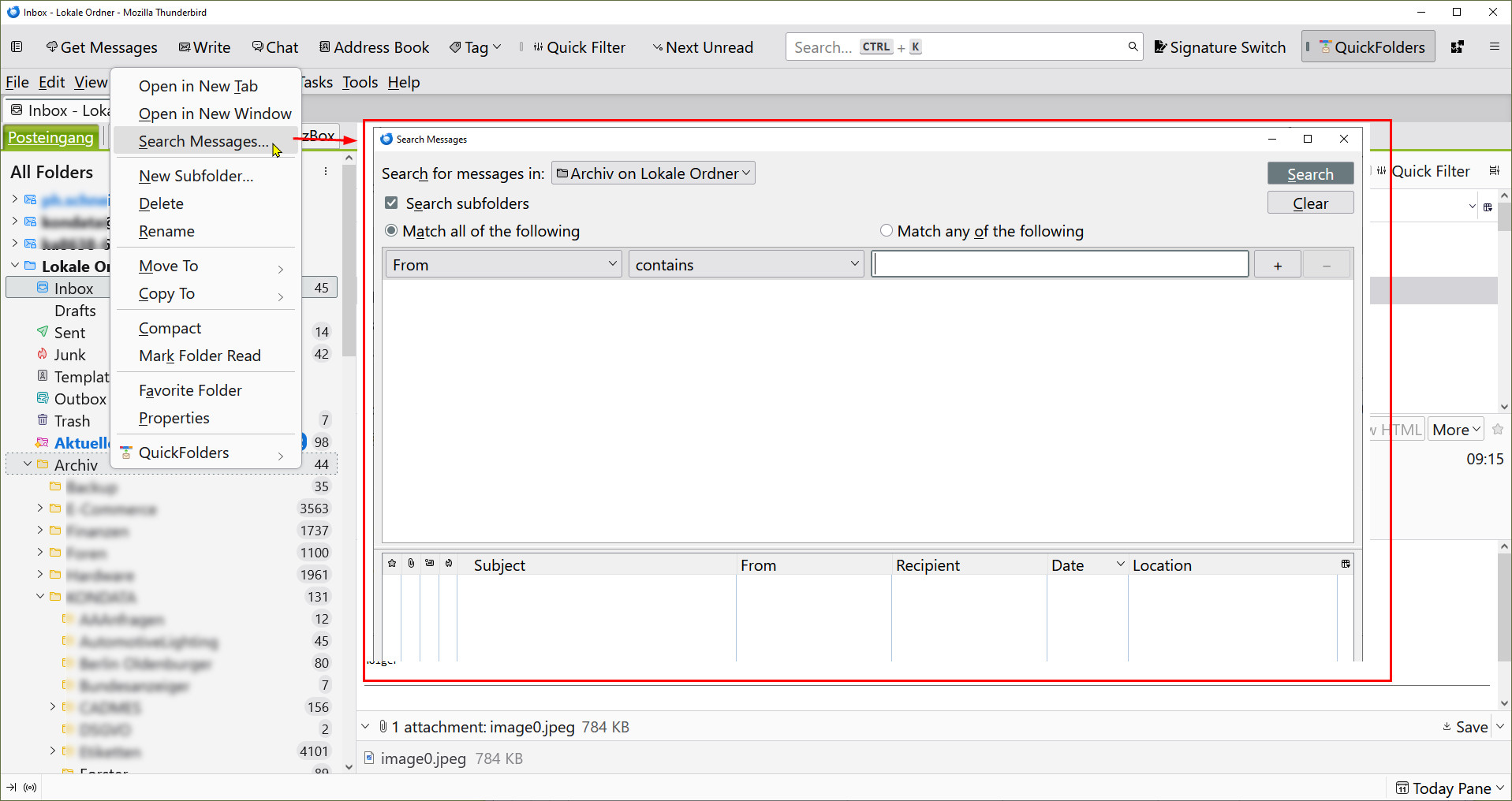 Trotzdem, wenn ich mit Hilfe des Suchfensters nach einer Mail suche, dann kommt die Suche oft nicht zum Ende.