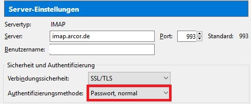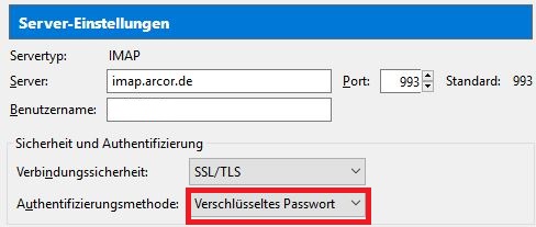 wenn ich die Servereinstellungen auf "Verschlüsseltes Passwort" setzte , holt Thunderbird keine Emails ab.