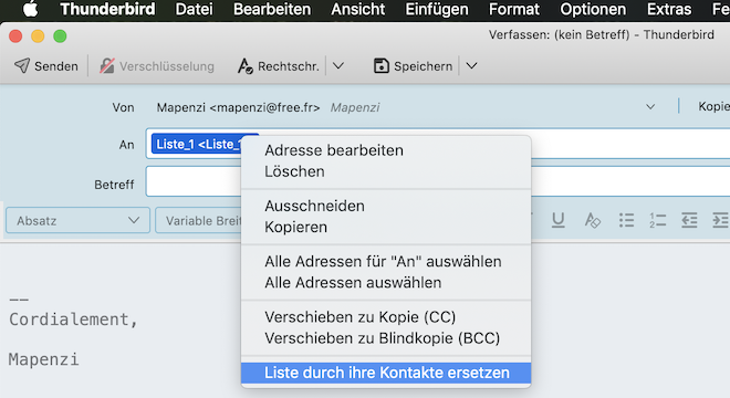 Hallo, es gibt seit TB 91 im Verfassen-Fenster eine Möglichkeit, über das Kontext-Menü der Empfängerzeile die gewählte Liste zu öffnen und ad hoc zu bearbeiten: