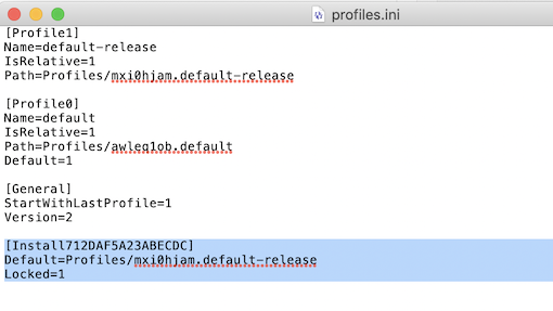 Dabei fällt auf, dass meine verschiedenen profiles.ini Dateien allesamt deine ersten drei ersten Zeilen nicht am Beginn der Datei, sondern unten am Ende aufführen :