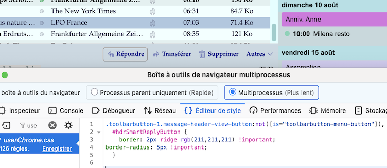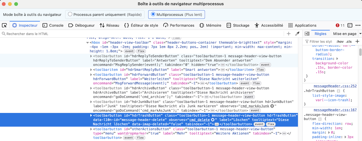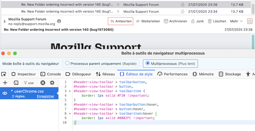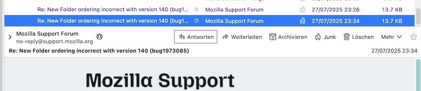 ich möchte die vier Buttons Antworten, Weiterleiten, Löschen und Mehr (alle anderen habe ich ausgeblendet!) anzeigen, wie es bei mir in der Version 139 noch der Fall war und wie es in meinem ersten Beitrag in dem kleinen Bild angezeigt wird.