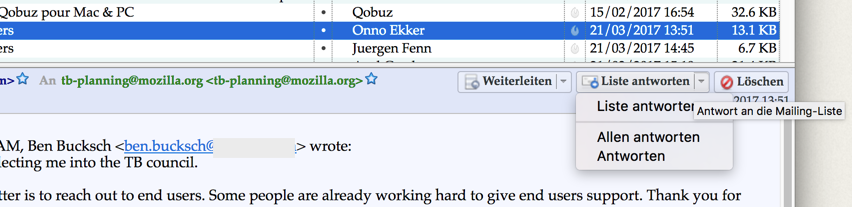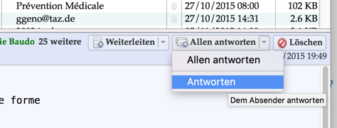 Wenn wir auf eine Mailinglisten-Mail antworten wollen per Klick auf "Antworten", ging die Antwort bisher immer an die Liste, nicht an den Absender.