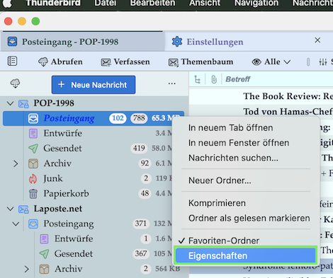 • starte die neu installierte Version von Thunderbird und richte dein Konto ein wie zuvor.
