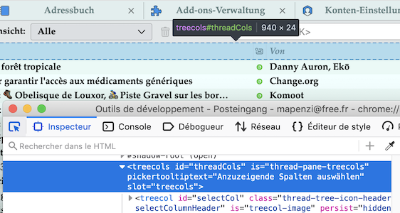 Falls du das TB-Adressbuch benutzt, kannst du nachsehen, ob es bevölkert ist?