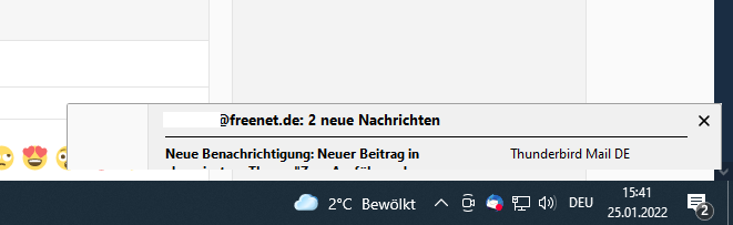 Hat noch jemand anderes eine Idee was ich probieren könnte? Es ist schon ein bisschen nervig, immer dieses Pop-Up beim Start von Thunderbird mit "Ok" bestätigen zu müssen... vielen Dank!