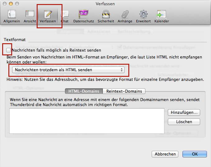 Aus diesem Grund gehe ich davon aus das ich in meinem Thunderbird irgend wo eine Einstellung falsch gesetzt habe, ich kann mich jedoch nicht erinnre das ich überhaupt etwas an den Einstellungen gemacht habe.