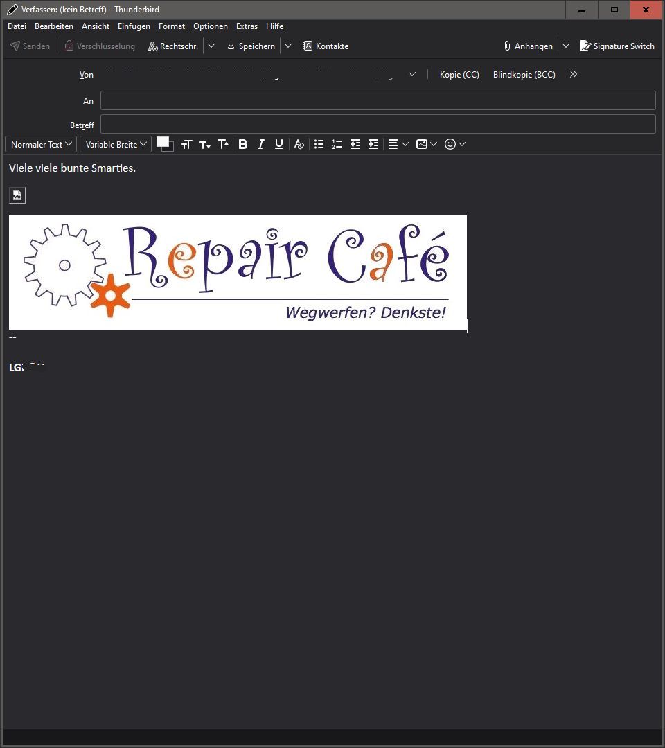 2) Sämtliche unterschiedliche mit allen mir erdenklichen Einstellungen eines Einbettens einer Grafik in ein(en) neues Mail / bearbeiteten Entwurf sind erfolglos. Das erste - was diese mehrmaligen Versuche auslöste - Bearbeiten einer bestehende Vorlage hat diese beim Rückspeichern in "Vorlagen" gelöscht.