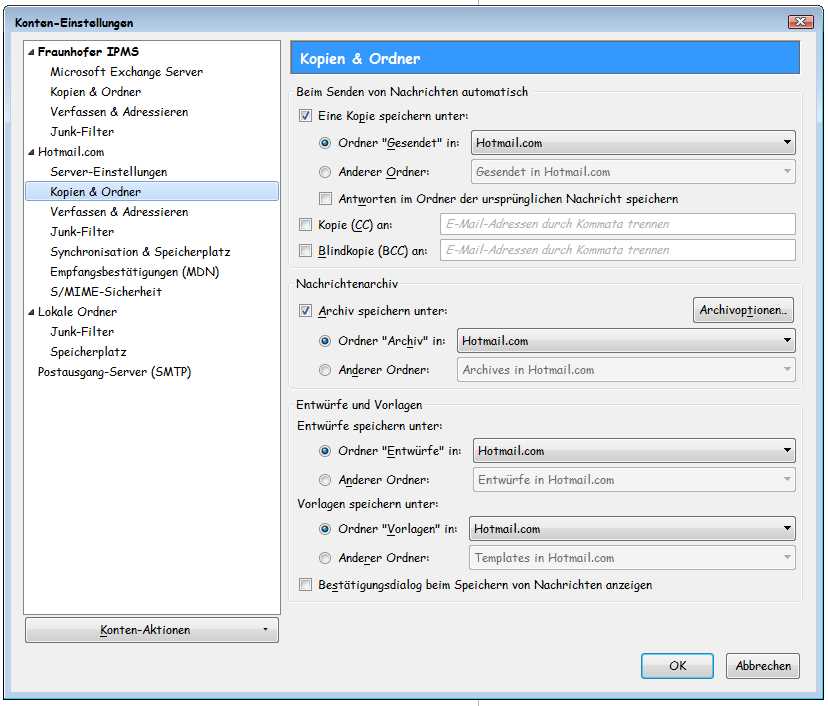 * Postfachanbieter (z.B. GMX): Hotmail und Fraunhofer