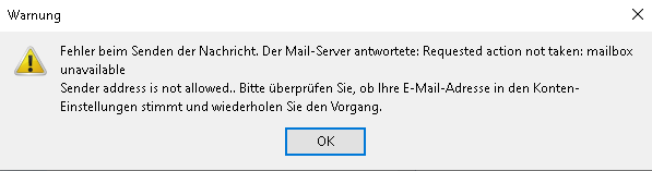 Und der Fehler kommt nur beim Senden. Egal wohin die Post gehen soll, selbst an mich selbst. Empfang und Verschieben in den Ordnern geht.