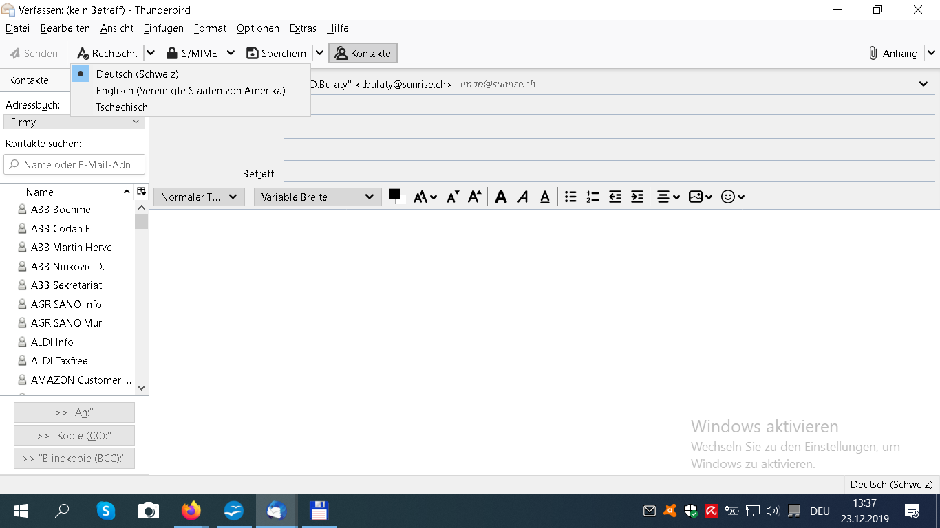 Nach dem Übergang zur v. 68 verschwanden mir alle Wörterbücher, d.h. Deutch, Deutsch(Schweizerisch), Englisch(US), Tschechisch mit und noch ohne Umlaute. Ich versuchte diese direkt aus den ThB-Einstellungen\Verfassen\Rechtsschreibung zu installieren, nach mehrmaliger "Installation" dort mit Aus- und Einschalten von ThB schaffte ich nur das Englisch (US) hinzufügen. Deswegen ging ich daran via Add-ons Verwaltung\Wörterbücher und konnte mindestens (scheinbar) beide Tschechisch, US und CH hinzufügen, s. Bild 1