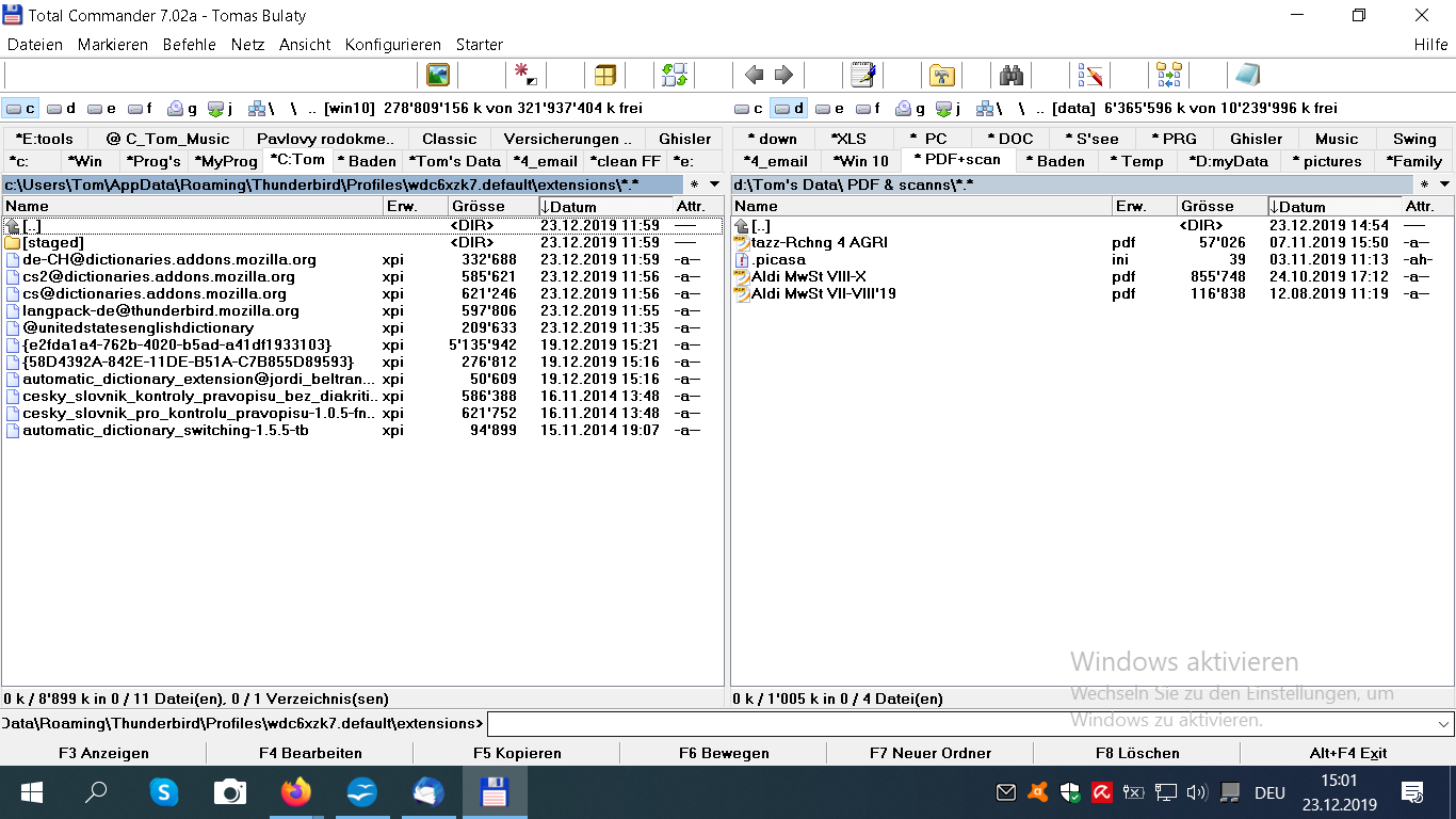 Weiter: Ich hatte den ausgelagerten Mail-Ordner schon Jahre und somit legte ich ihn gleich nach dem OS-Wechsel dorthin an. Deswegen habe ich keine Emails verloren bzw. zu verlieren. Auch mache ich regelmässig Backups auf ext. HDD vom ganzen System (Partition C:), meiner Data-Partition (und somit auch ungezippte alle ThB-Dateien) sowie alle Backups, die ich laufend gemacht habe. Auch trenne ich die Installation weiterer Programme von derjenigen des Systems auch auf C: voneinander.