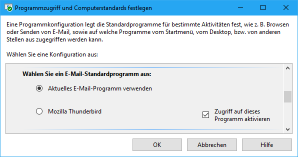 Das Dialogfeld sieht nicht so aus, wie standardmäßig: