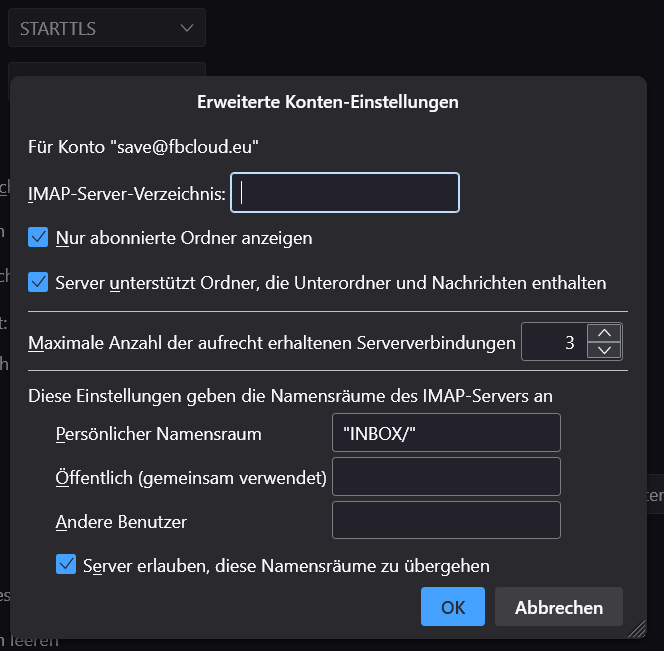 Unter Konto-Einstellung sind alle Einzel-Ordner in xxx@yyy.zzeingetragen, NICHT in xxx@http://yyy.zz/Posteingang. Verschienben lassen sich die Ordner nicht.