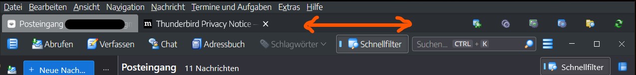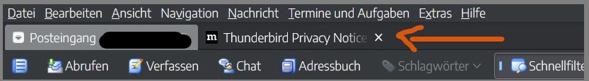 ...steht da: "Tab schließen"... und wenn man (,wie ich versehentlich...) klickt, ist diese Zeile weg incl., der Schnellzugriffe rechts in der Zeile.