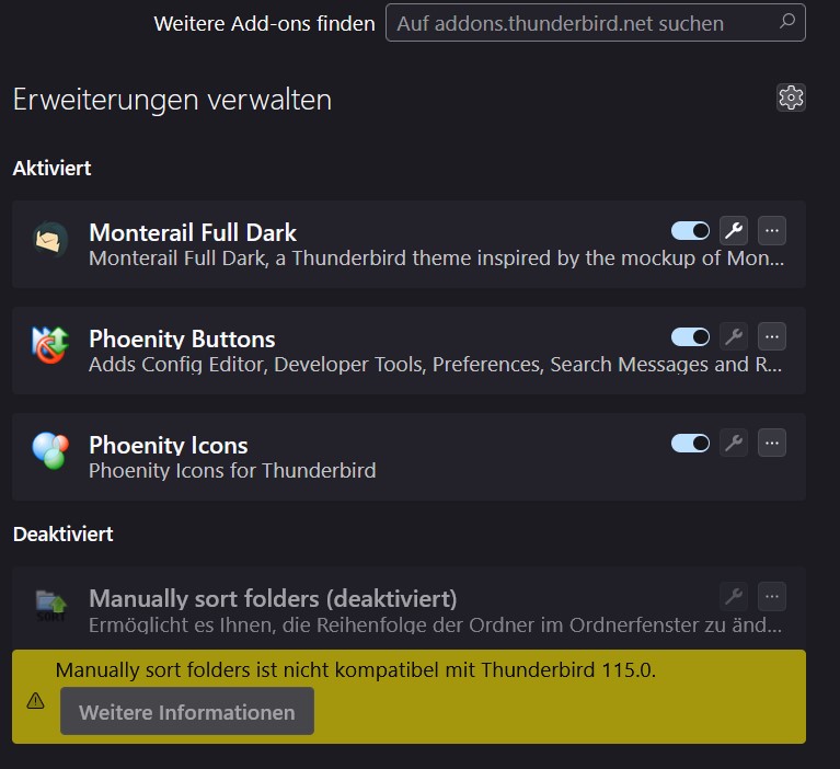 Ich meinte, wenn ich in dieser Leiste auf dieses rechte grüne Symbol gehe, dann steht da "Restart Thunderbird" das ist ein normaler Button. Mit Skript habe ich nichts am Hut..., so tief stecke ich nicht drin... !