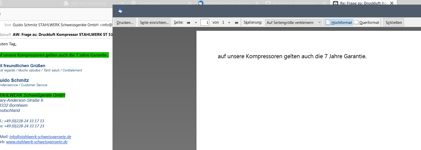 wie kann man eigentlich nur den Markierten Teil Drucken ohne die komplette eMail ?