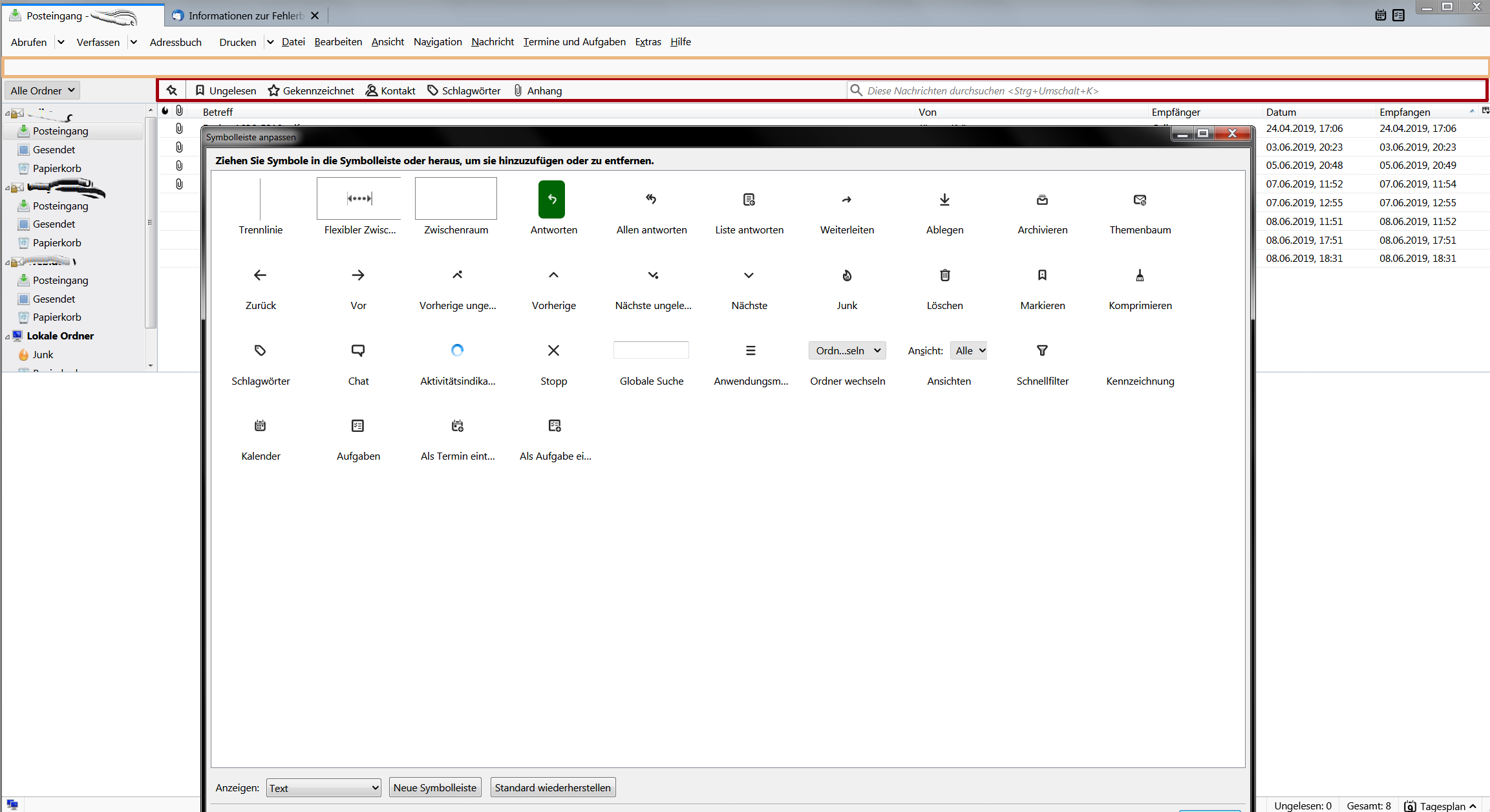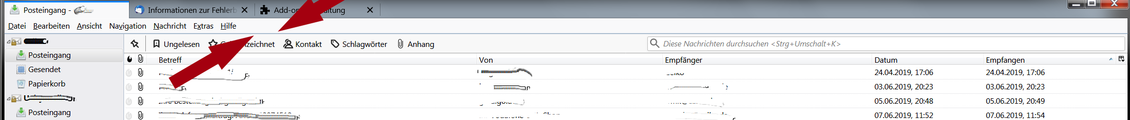 - Thunderbird-Version: 60.8.0 (32-Bit)