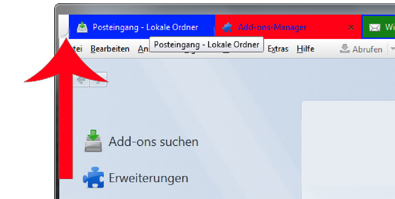 mir ist was aufgefallen bei den Tabs und zwar, wenn man vim 2ten Tab "AddOn - Manager" zu "Posteingang Lokaler Ornder" wechselt bzw mit der Maus drüberfährt sieht man voin den Originalen Tabs noch den Rand (siehe roter Pfeil).