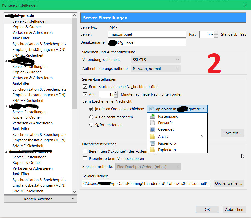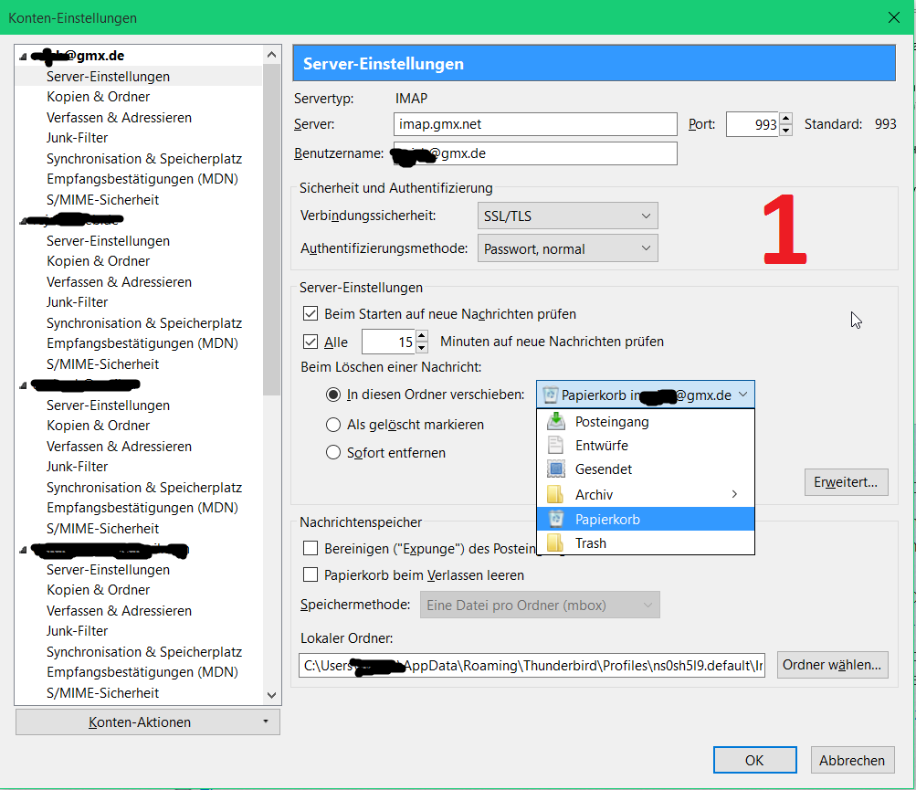 Alles irritierend, es entstehen Ordner bei GMX, Gelöscht <->Papierkorb, wo ist der Unterschied?