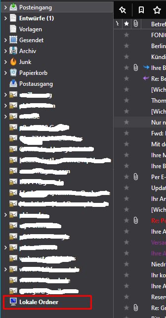Problem: einer von zehn Ordnern (= Mailkonten) erscheint beharrlich ein zweites Mal (![]()