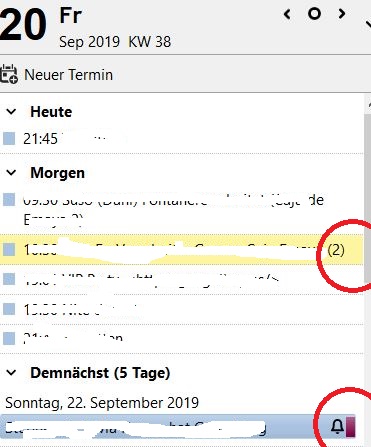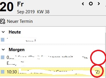 In der Terminvorschau (rechte Seite d. Bildschirms) ist bei manchen Terminen an der rechten Seite ein farblicher Balken angezeigt.