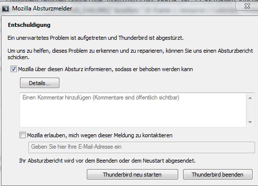 bei mir gibt es im Anhang befindliche Fehlermeldung, wenn ich nach dem Update (ich habe automatisches Update aktiviert, sodass ich immer up-to-date bin) T-Bird mit aktiviertem Lightning starten will. Wenn alle Addons deaktiviert sind, startet das Programm problemlos, wenn ich dann NUR Lightning 3.3.1 aktiviere, kommt beim Neustart wieder der Crash. Ich habe unten auch noch mal den ausführlichen Fehlerbericht eingefügt.Für mich sieht es nach einer Inkompatibilität zwischen 31.3.0 und Lightning aus ...