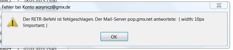 Ich schließe dann Thunderbird und wieder neu = dann erhalte ich alle E-Mails oder auch wieder ne Fehlermeldung.