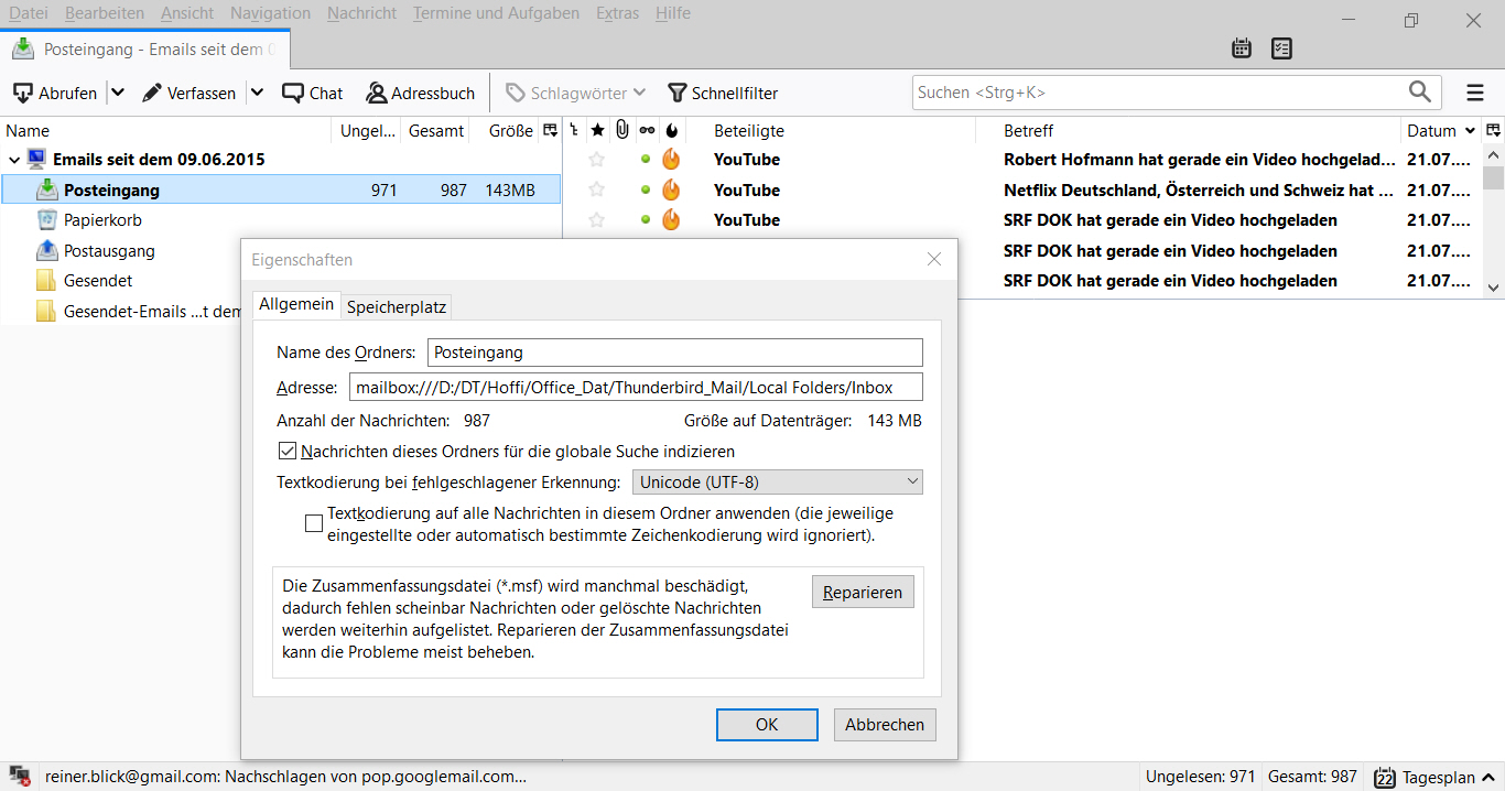 Ich kenne das Problem seit den frühen Zeiten von OUTLOOK, wo auch so eine Outlook-Container-Datei .pst nicht größer als 2 GB werden durfte...ist allerdings auch gut 30 Jahre her. Mein Problem mit den verschwundenen Konten in TB hat ja jetzt aktuell nicht an den großen Mail-Dateien in TB gelegen - obwohl ich wegen meiner Outlook-Erfahrungen aus der Vergangenheit - diese Befürchtung hatte. Aber DANKE für deinen Hinweis.