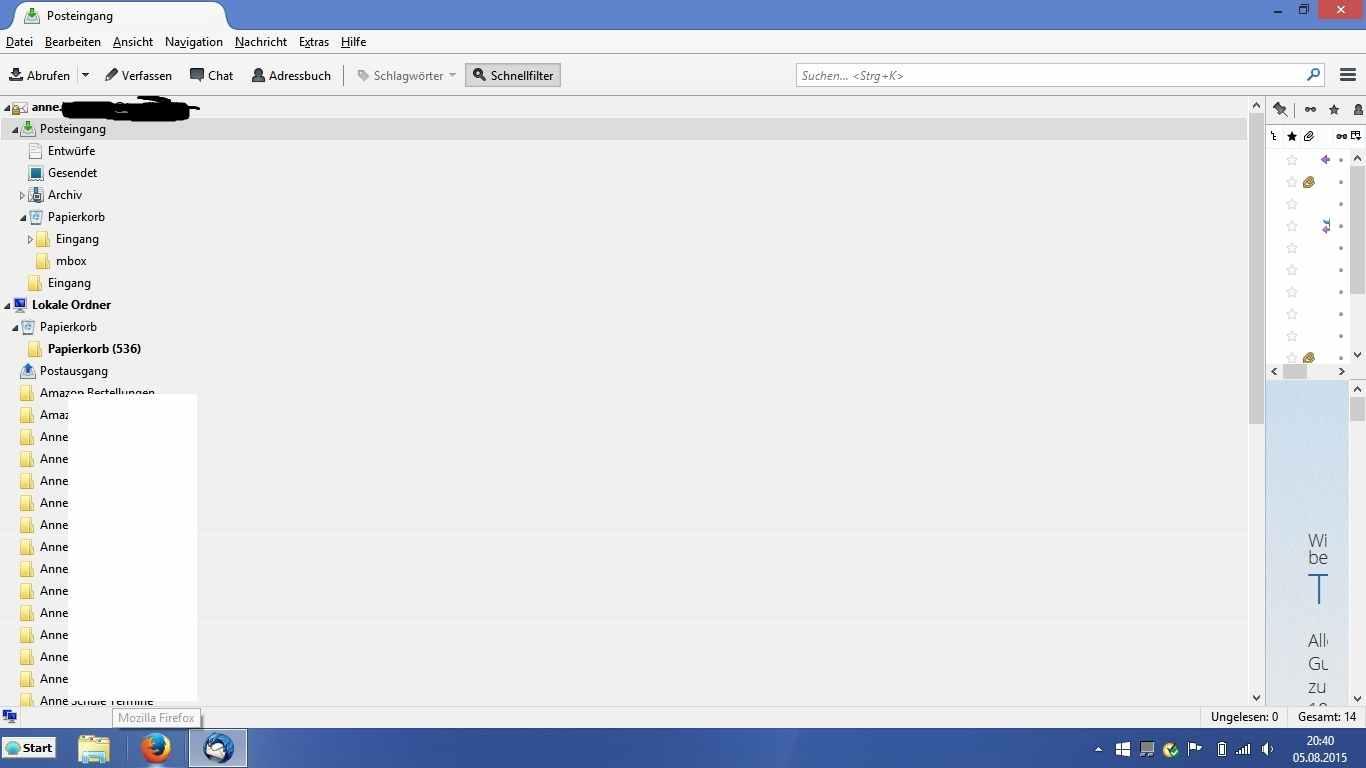 Sorry wenn es etwas kompliziert klingt, aber ich habe ewig mit dem Email Programm von T-Online gearbeitet und nachdem dieses nicht mehr geht bin ich erst vor kurzem auf Thunderbird umgestiegen und kenn somit nur wenige Einstellungen