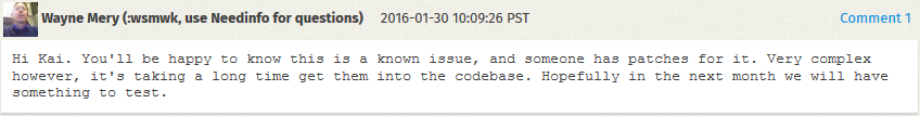 Wenn das neue Buffering keine Besserung bringen sollte, gehe ich dem Punkt wieder nach, um meiner Bug-Meldung mehr Gehalt zu geben.