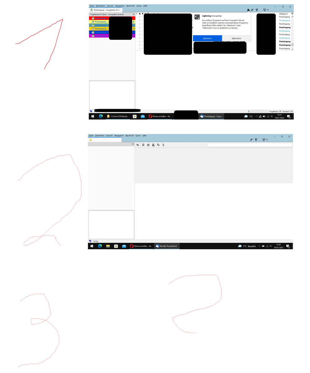 Du hast bestimmt ein unbrauchbares (weil veraltetes) Sprachpaket im Profil, welches jetzt in einer neueren Thunderbird-Version plötzlich wieder aktiviert ist und zu dem letzten Problem führt - zumindest wäre dies mein spontaner Verdacht.